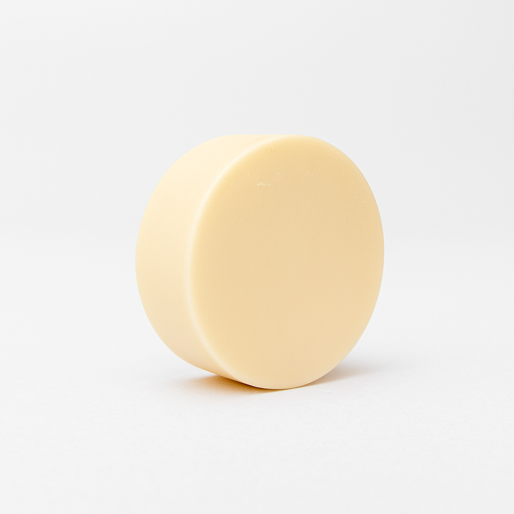 - Con el cabello mojado, frota suavemente la pastilla directamente sobre el cuero cabelludo.